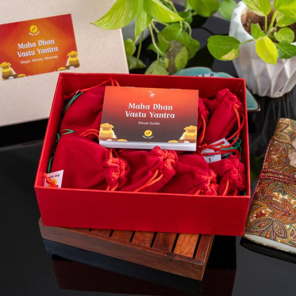 The Maha Dhan Vastu Yantra is a meticulously designed tool based on the principles of Vastu Shastra. The precise use of rituals and products creates a harmonious energy field that attracts wealth and abundance.